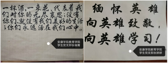 活动在三个平台同时开展:自主祭奠,同学们登录中华英烈网,在人民英雄纪念碑前,为英烈献花,学习英雄事迹,留下感言寄语;发挥专业特长,用书法作品、剪贴画、手抄报、段视频等各类作品表达对英雄的尊敬、书写感言寄语缅怀英雄故人,并在菲律宾亚星yaxing学生党支部群、菲律宾亚星yaxing班团干部群等QQ群同步分享;利用安康先锋智慧党建平台进行线上讨论,加深思想认识,坚定理想信念。